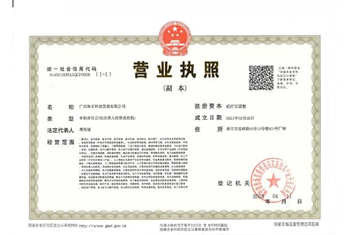 广西海卓科技发展有限公司坐落于南宁中关村信息谷-联东U谷南宁国际企业港,是一家集研发、生产、销售、服务于一体的高科技电力企业,是致力于智能设备、安全防护、安全工具、仪器仪表、除草剂、电力设施、绿色能源、新型技术的数字电网一站式产品供应及技术服务商。公司坚持以用户为中心,以创新为驱动,构建一流的数字电网一站式综合服务体系,公司拥有高素质、专业化的数字电网研发团队,具备丰富的科研经验和创新能力,在数字电网领域取得了一系列重要的科研成果,并获得多项国家专利及软件著作权。公司已通过“ISO 9001:2015质量管理体系”、“ISO 14001:2015环境管理体系”、“ISO 45001:2018职业健康安全管理体系认证”,已获得“农药经营许可证”,已获得“企业资信用等级AAA证书”、“企业信用等级AAA证书”,已获得“碳足迹认证证书”、“绿色企业认证证书···